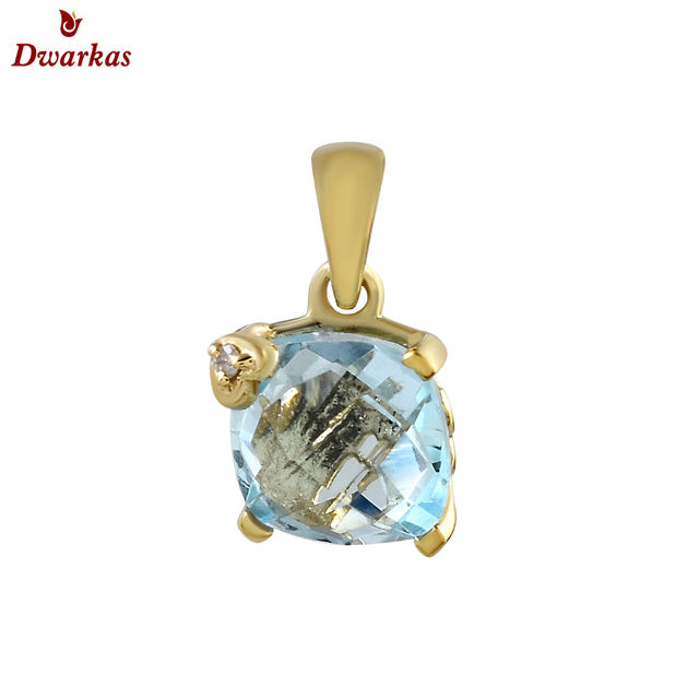 จี้เครื่องประดับแฟชั่นเครื่องรางชุบทอง925หินเงินสเตอร์ลิงจี้พลอยบุษราคัมสีฟ้า