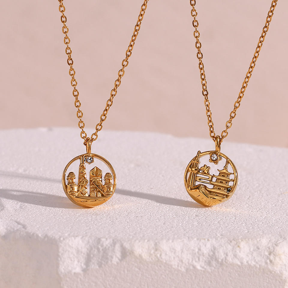 Fashion Simple Sweater Chain Jewelry Stainless Steel World City Round Pendant Necklace