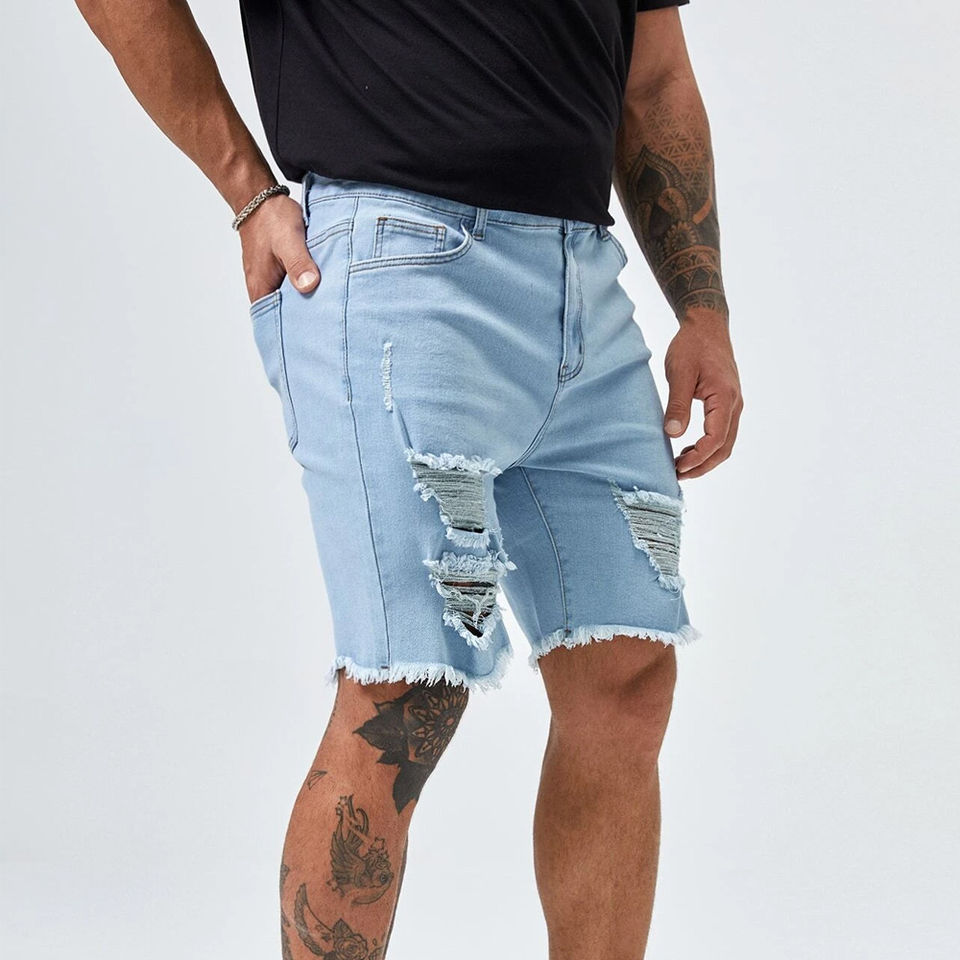 fashion stacked casual pants mens jean shorts ripped jeans shorts mens summer denim shorts