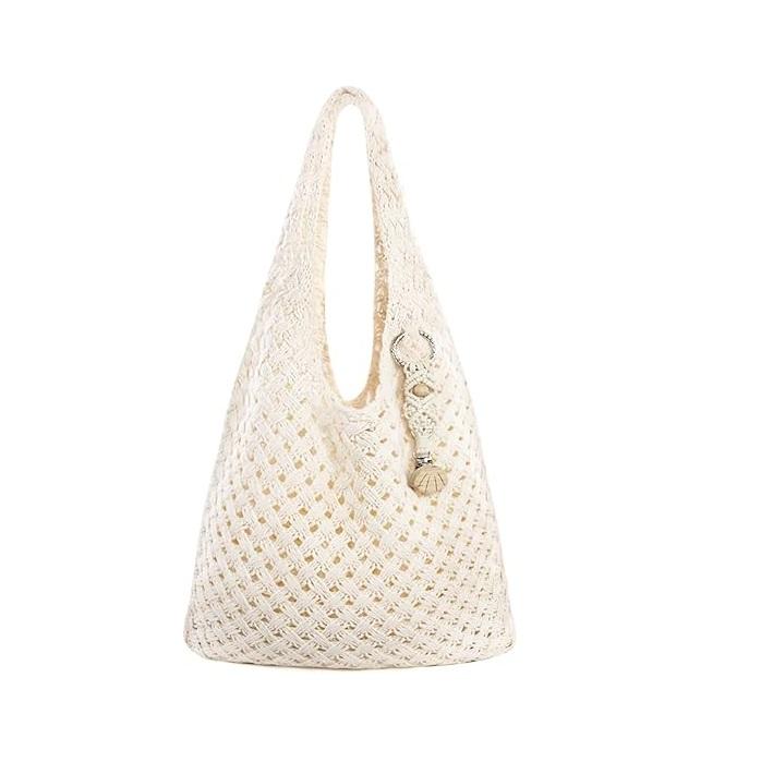 fashionable macrame women handbag in boho style with intricate weaving ideal for summer and casual outfits