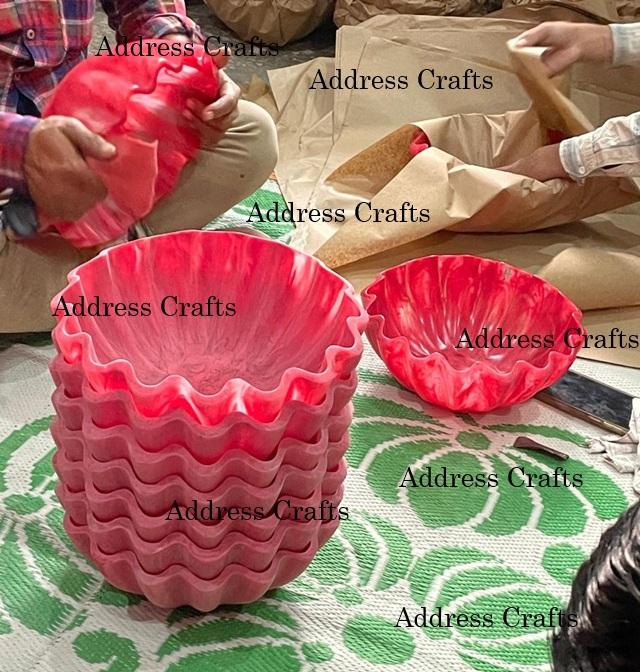 ชามผลไม้เรซิ่นรูปทรงดอกไม้ สไตล์วินเทจ ชามเสิร์ฟเรซิ่น ชามเรซิ่นหล่อขึ้นรูปด้วยมือ ชุดอาหารบนโต๊ะอาหาร จาน