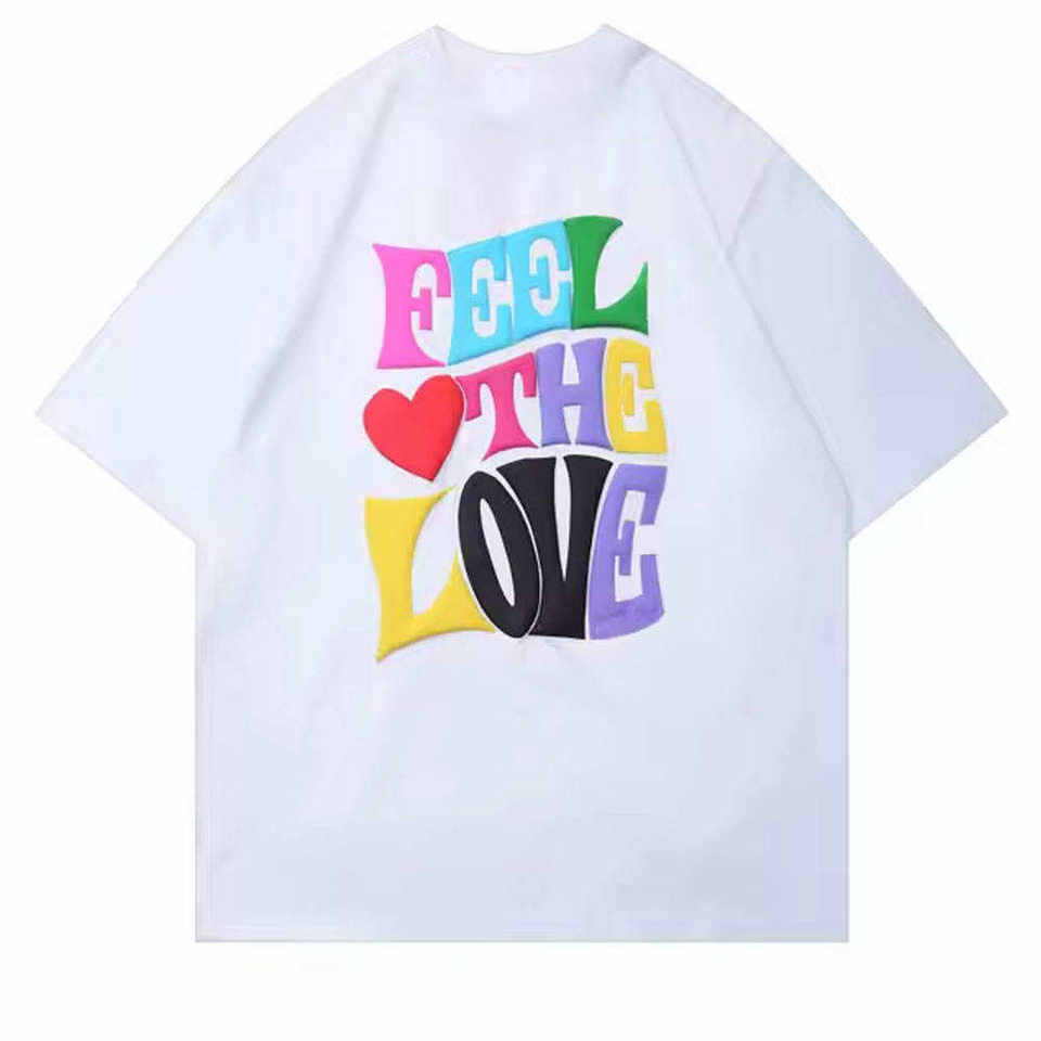 เสื้อยืดพิมพ์ลายโฟม 100% ผ้าฝ้าย คอกลม ทรงโอเวอร์ไซส์ เสื้อยืดพิมพ์ลายพัฟฟ์สำหรับผู้ชาย