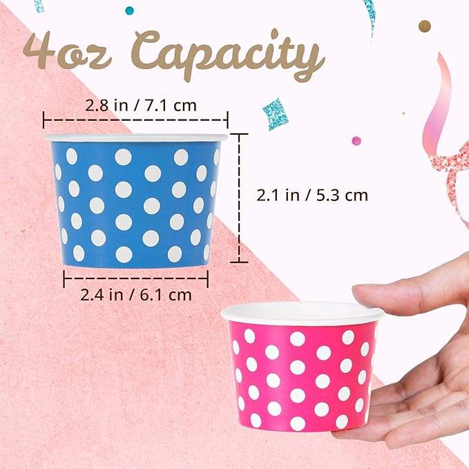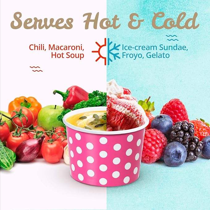 ถ้วยไอศกรีมและเจลาโต้แบบใช้ครั้งเดียว ย่อยสลายได้ เกรดอาหาร ลายจุด