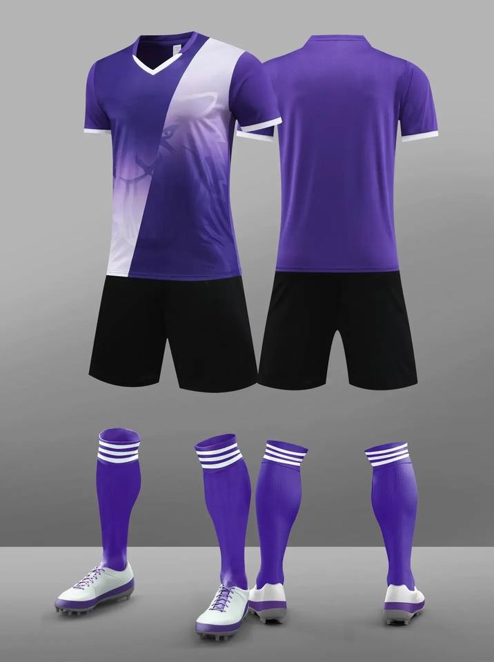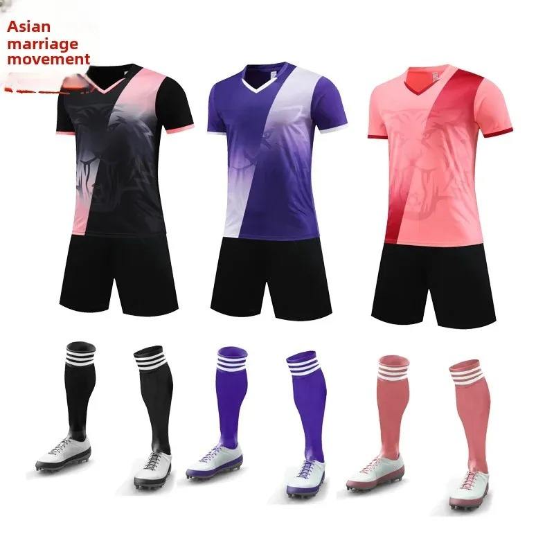 ชุดกีฬาพิมพ์ลายสำหรับเด็กและผู้ใหญ่ชุดฝึกฟุตบอลระบายอากาศได้ดี