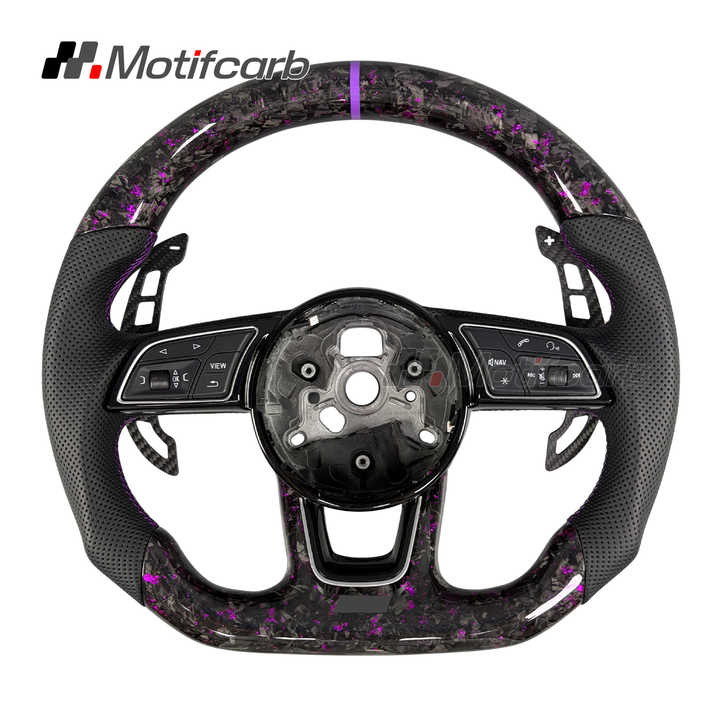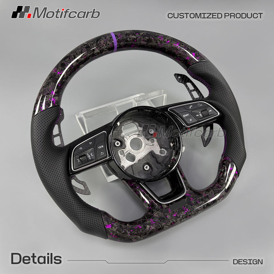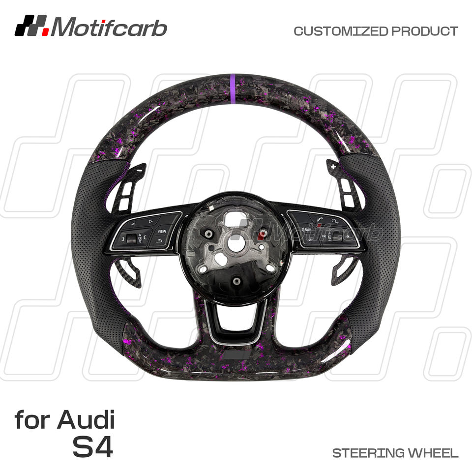 พวงมาลัยคาร์บอนไฟเบอร์สีม่วงสำหรับรถ Audi A4 S3 S4 RS4 RS3 A5ปรับแต่งได้2016-2024พวงมาลัยพร้อมตัวเปลี่ยนเกียร์แบบแม่เหล็ก