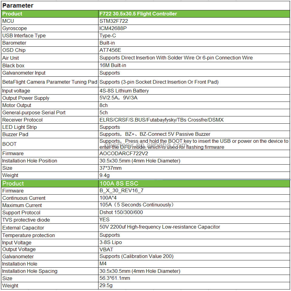 รุ่นที่เข้ากันได้: F722+ ESC 4in1 100A 8S Stack+2 ฮีทซิงค์อะลูมิเนียมอัลลอย