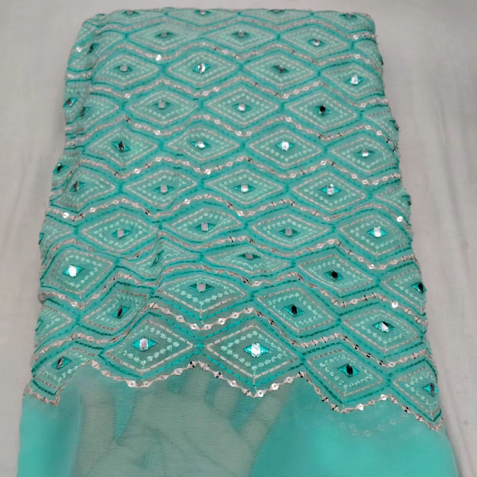 ผ้าฟ็อกซ์จอร์เจตต์ปักลายกระจกเงา ผ้าฟ็อกซ์จอร์เจตต์พรีเมียม ประดับด้วยลายปักเรชมดอกไม้ที่ประณีต สวยงามระยิบระยับ
