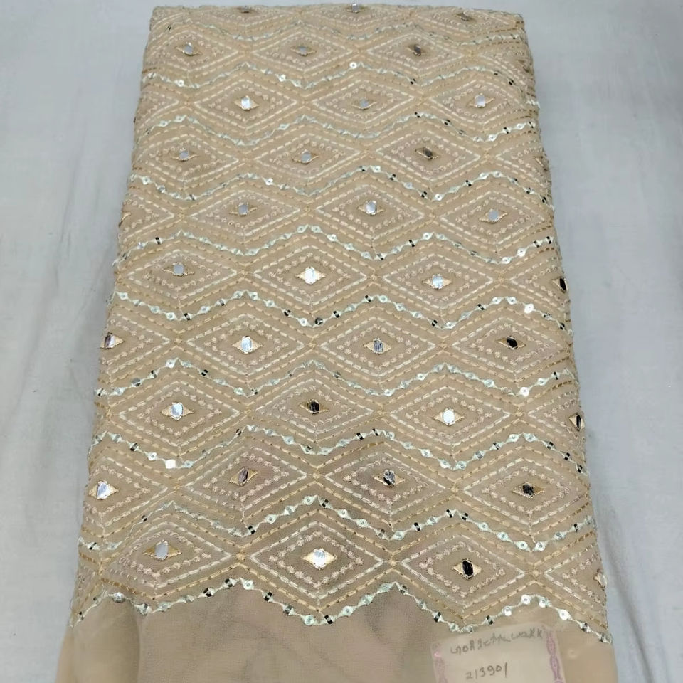 ชุดเดรสออกงานดีไซน์เนอร์ Fox Georgette ปักลายกระจกเงา ประดับด้วยกระจกเงาแท้และงานปักที่เปล่งประกาย