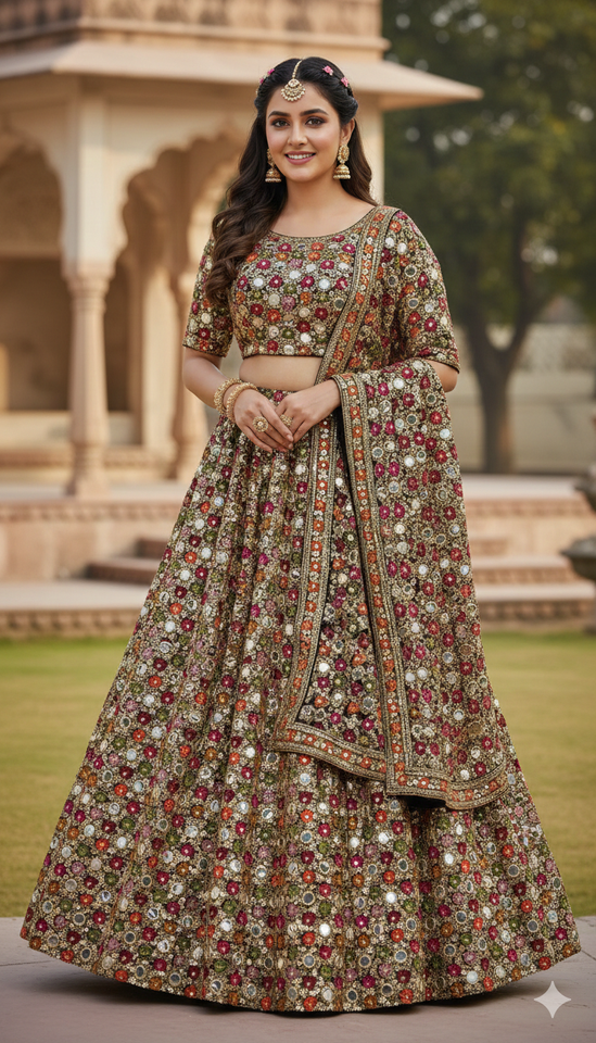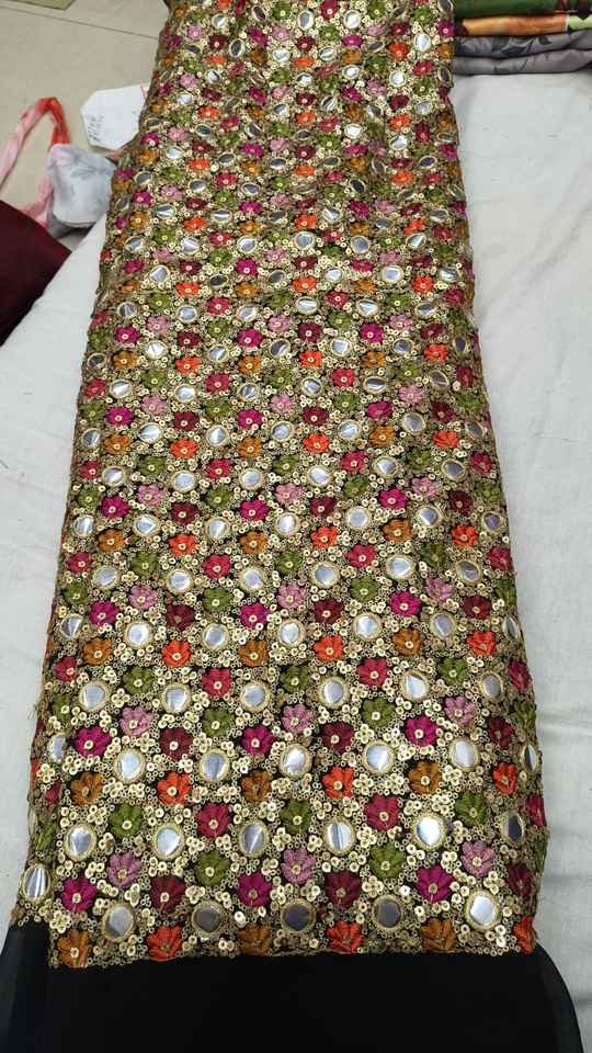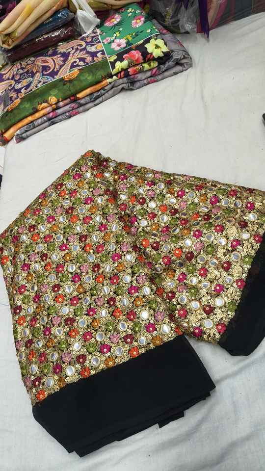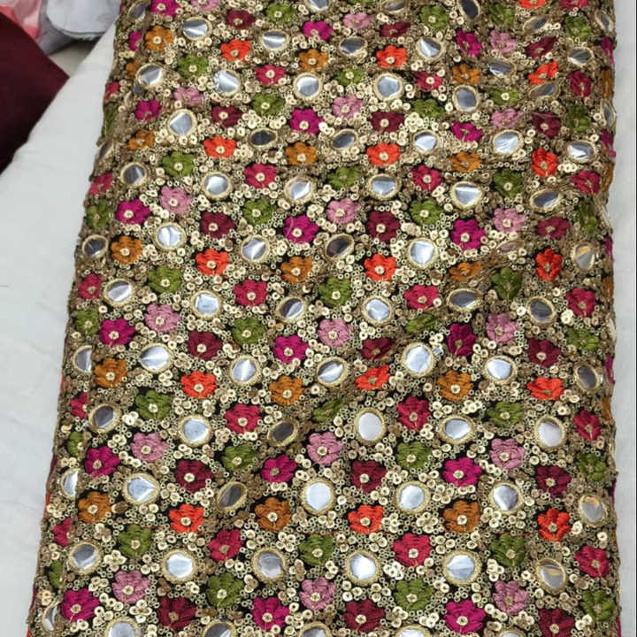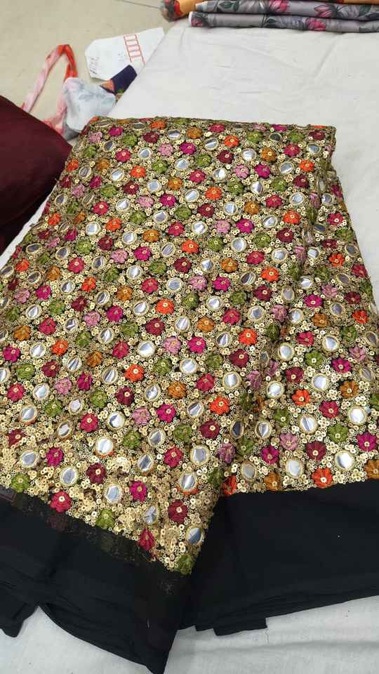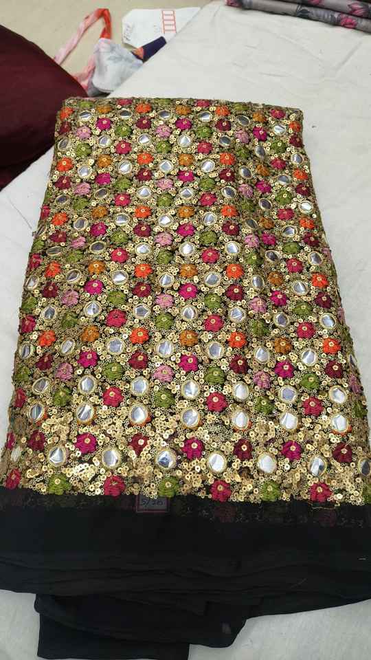 ผ้าฟ็อกซ์จอร์เจตต์ลายกระจกเงา Gemini กล่าวว่า ผ้าฟ็อกซ์จอร์เจตต์พรีเมียมลักชัวรี่ ประดับด้วยงานกระจกเงาแท้ประดิษฐ์ด้วยมืออย่างประณีต