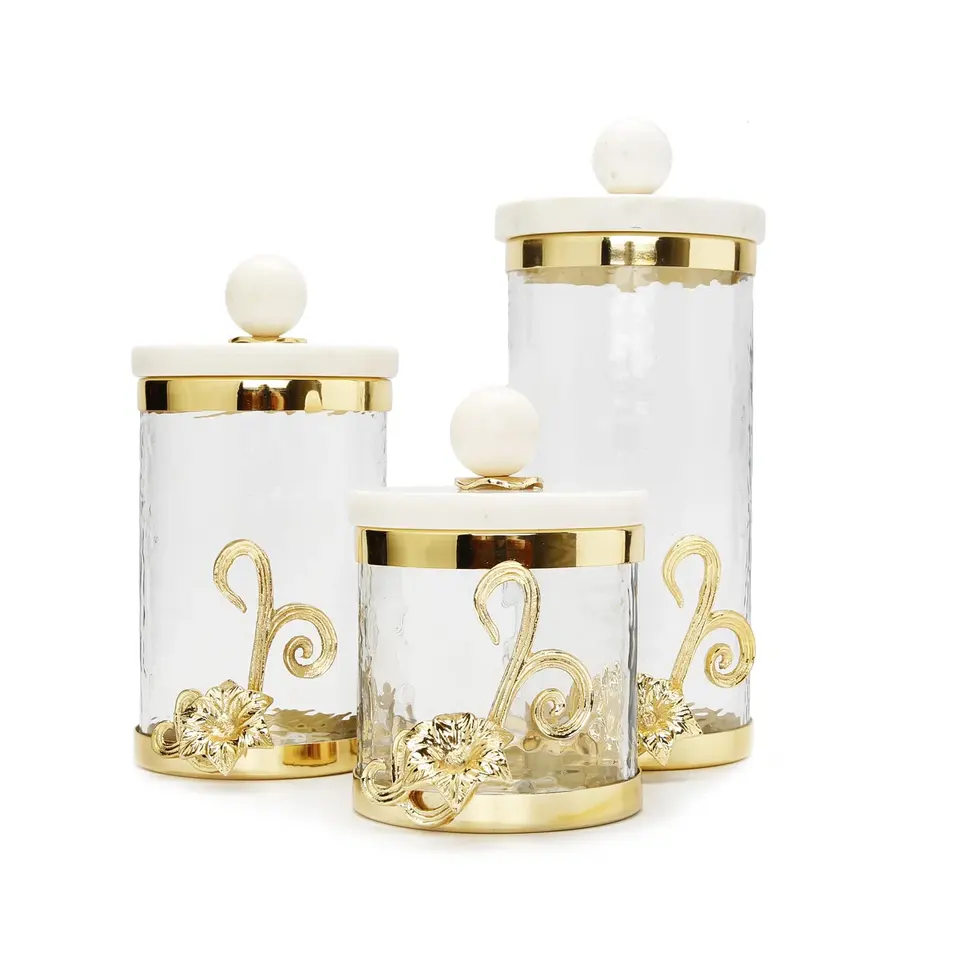 กล่องและภาชนะบรรจุอาหารโลหะหรูหราสำหรับตกแต่ง mackenzie แบบแฟนซีโลหะสีดำและสีขาว