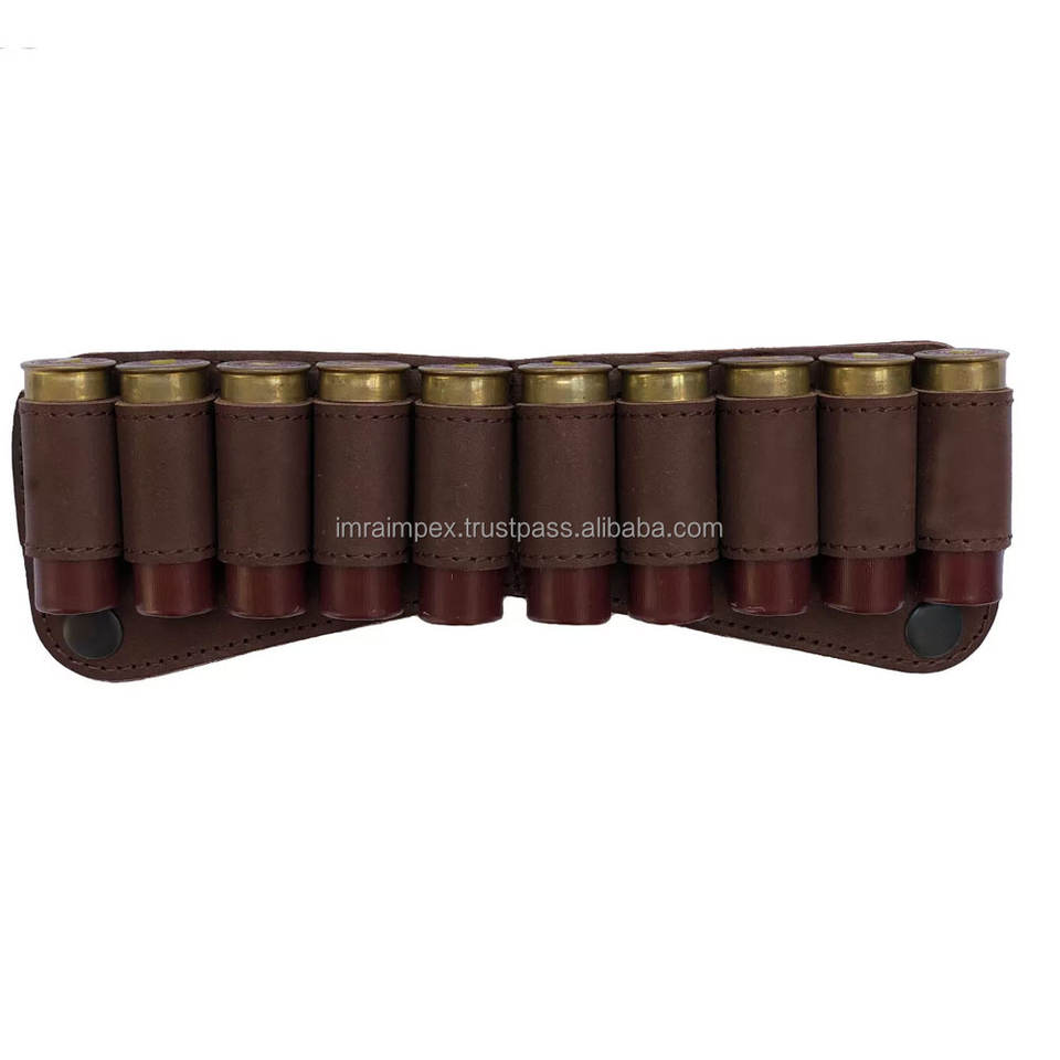 genuine leather 10 shells holder pouch ammo slide with press studs customizable tactical hunting cartridge belt