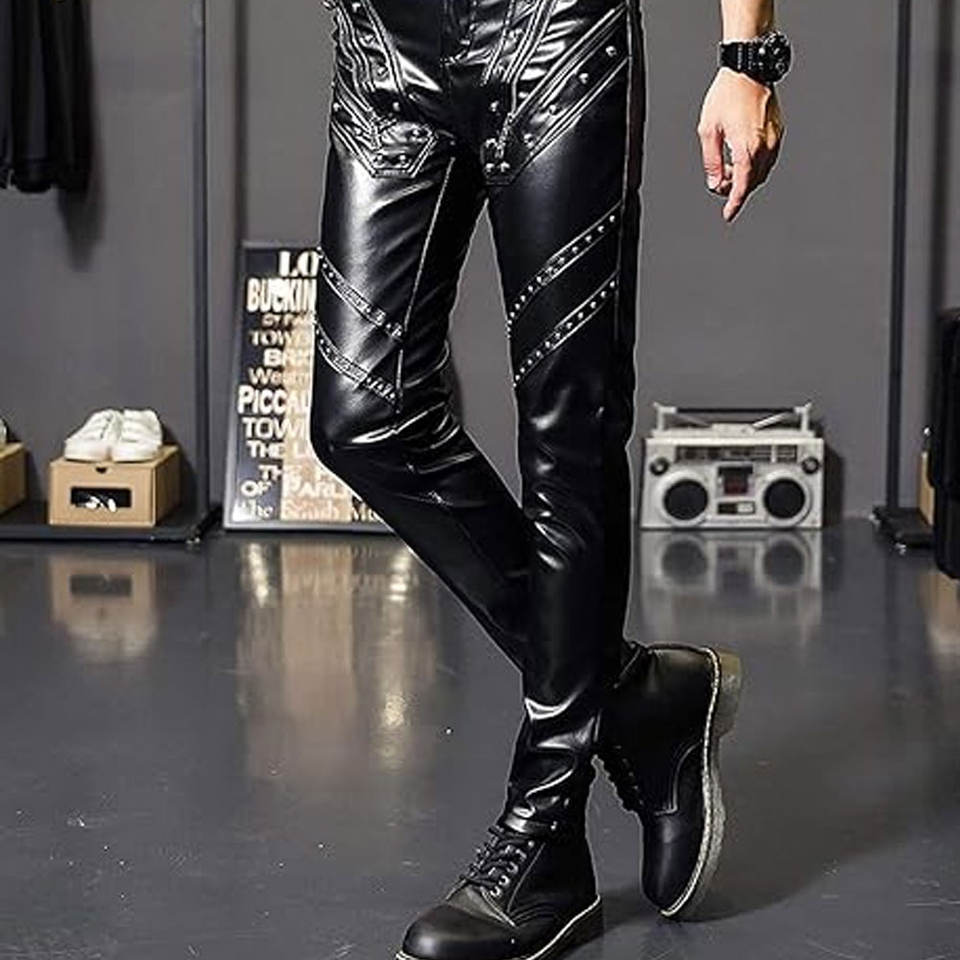 กางเกงหนังแท้ผู้ชายแฟชั่น กางเกงหนังทรงเข้ารูป สไตล์ลำลอง กางเกงหนังแท้ผู้ชายใส่สบายๆ กางเกงหนัง