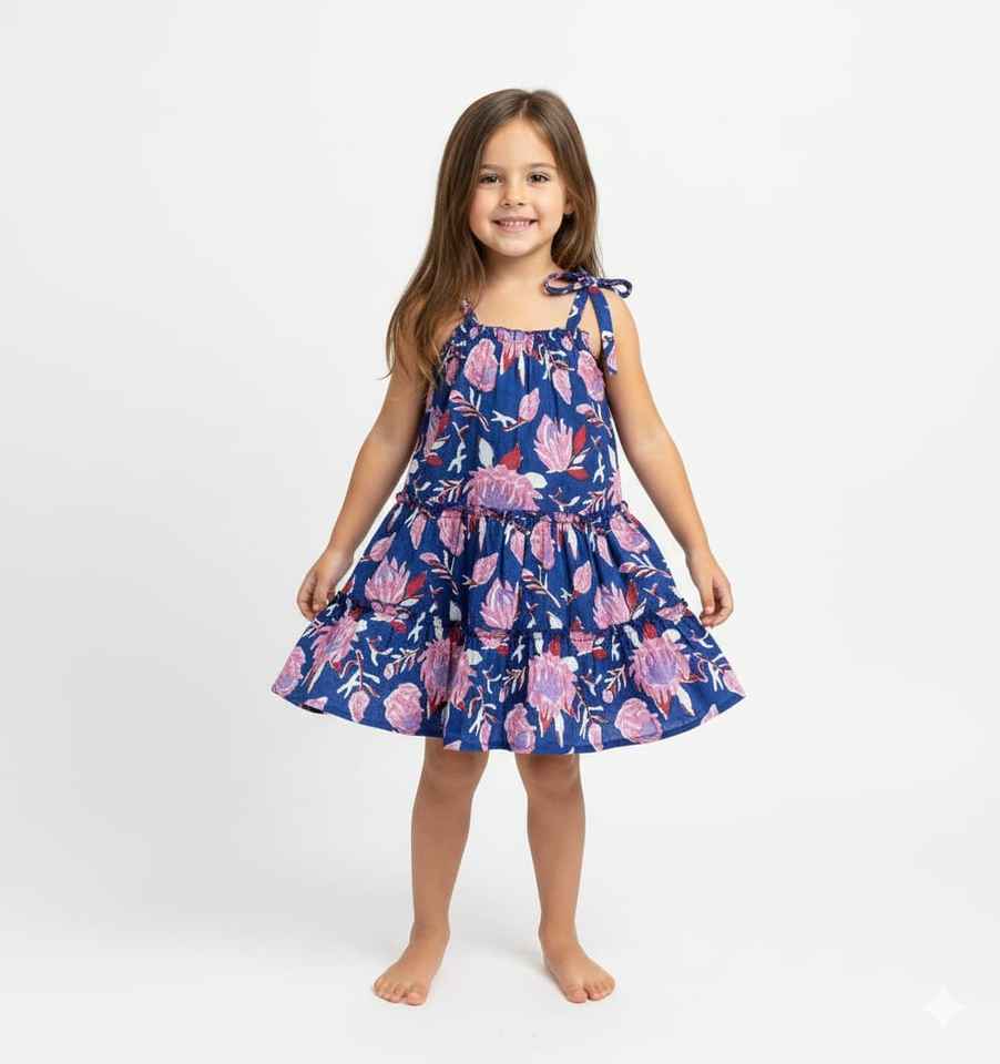 ชุดเดรสผ้าฝ้ายลินินสำหรับเด็กผู้หญิง | ชุดเด็กใส่สบายสำหรับฤดูร้อน สไตล์ลำลอง เหมาะสำหรับวันเล่นชายหาด ผลิตในอินเดีย