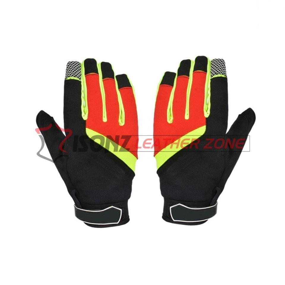 ถุงมือช่างแบบปรับแต่งได้ สำหรับงานทั่วไป ทำจากหนังสังเคราะห์/โพลีเอสเตอร์/ไนลอน บุซับใน ป้องกันการบาด ป้องกันแรงกระแทก ทนไฟ