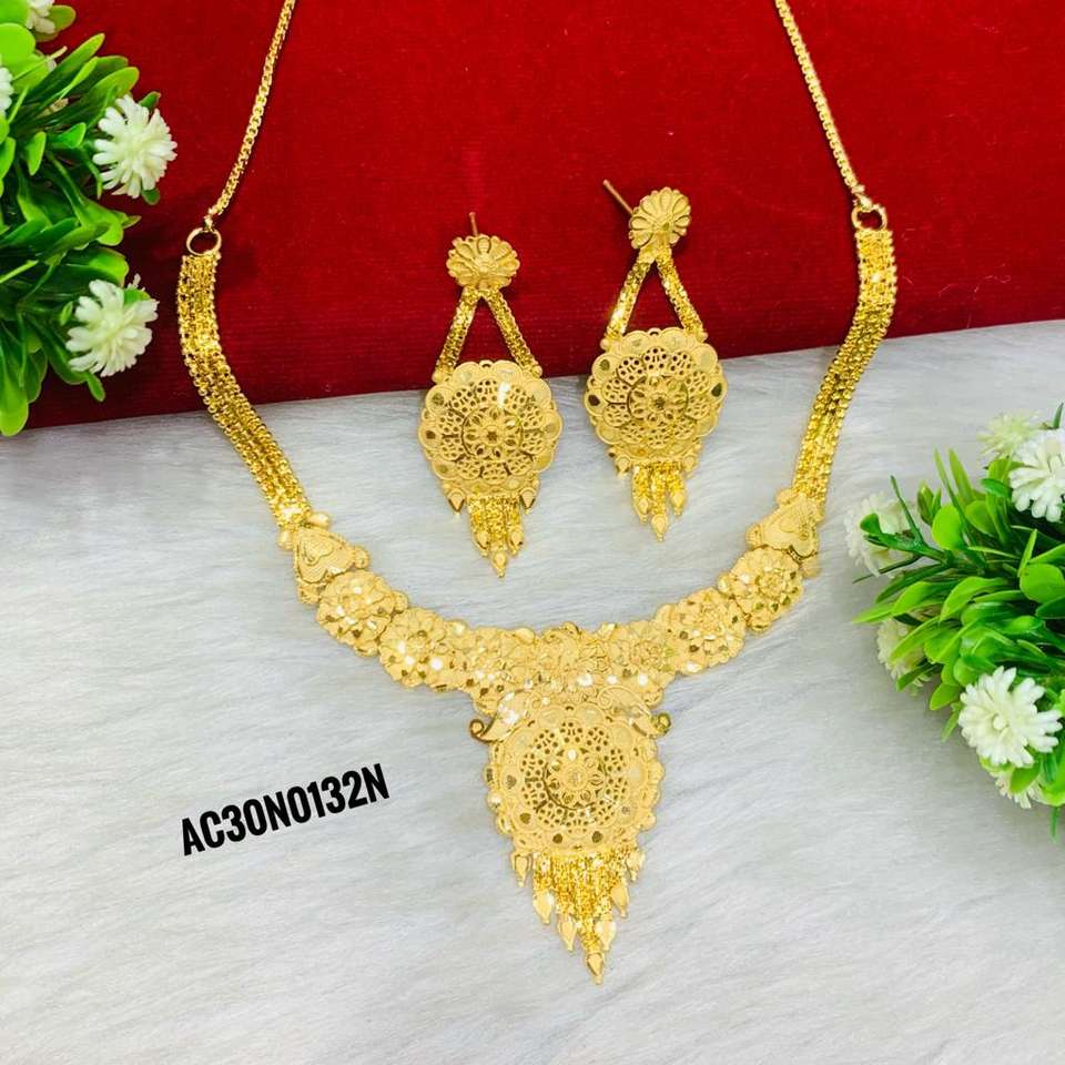 ชุดสร้อยคอโซ่ชุบทองเครื่องประดับแฟชั่นพร้อมลวดลายดอกไม้สำหรับงานเลี้ยงและงานแต่งงานทำจากทองเหลือง