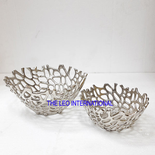 Golden Plated Fancy Decorative Fruit Bowl Aluminum Metal Set of 2 Unique Edges Stylish Home Kitchen Ware Bowl