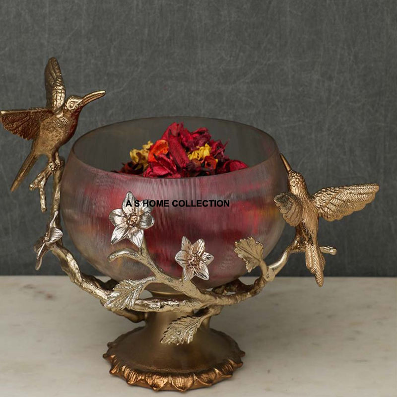 ชามอลูมิเนียมโลหะรูปนกและดอกไม้ดีไซน์ใหม่สำหรับตกแต่งโต๊ะอาหารและห้องครัวในบ้านดีไซน์หรูหราไม่เหมือนใคร