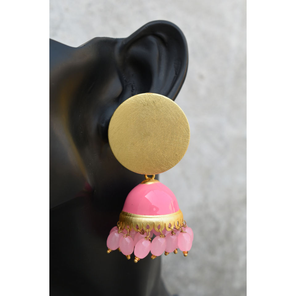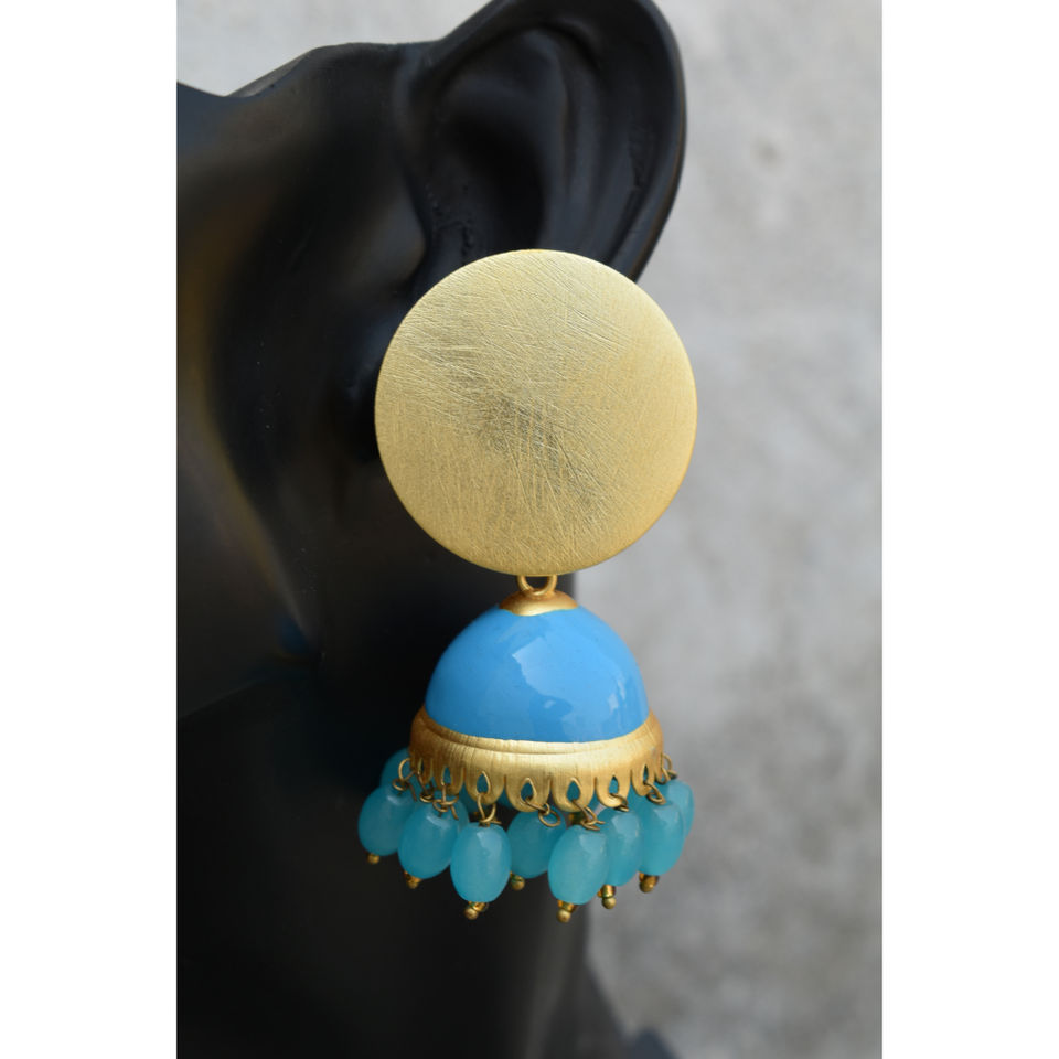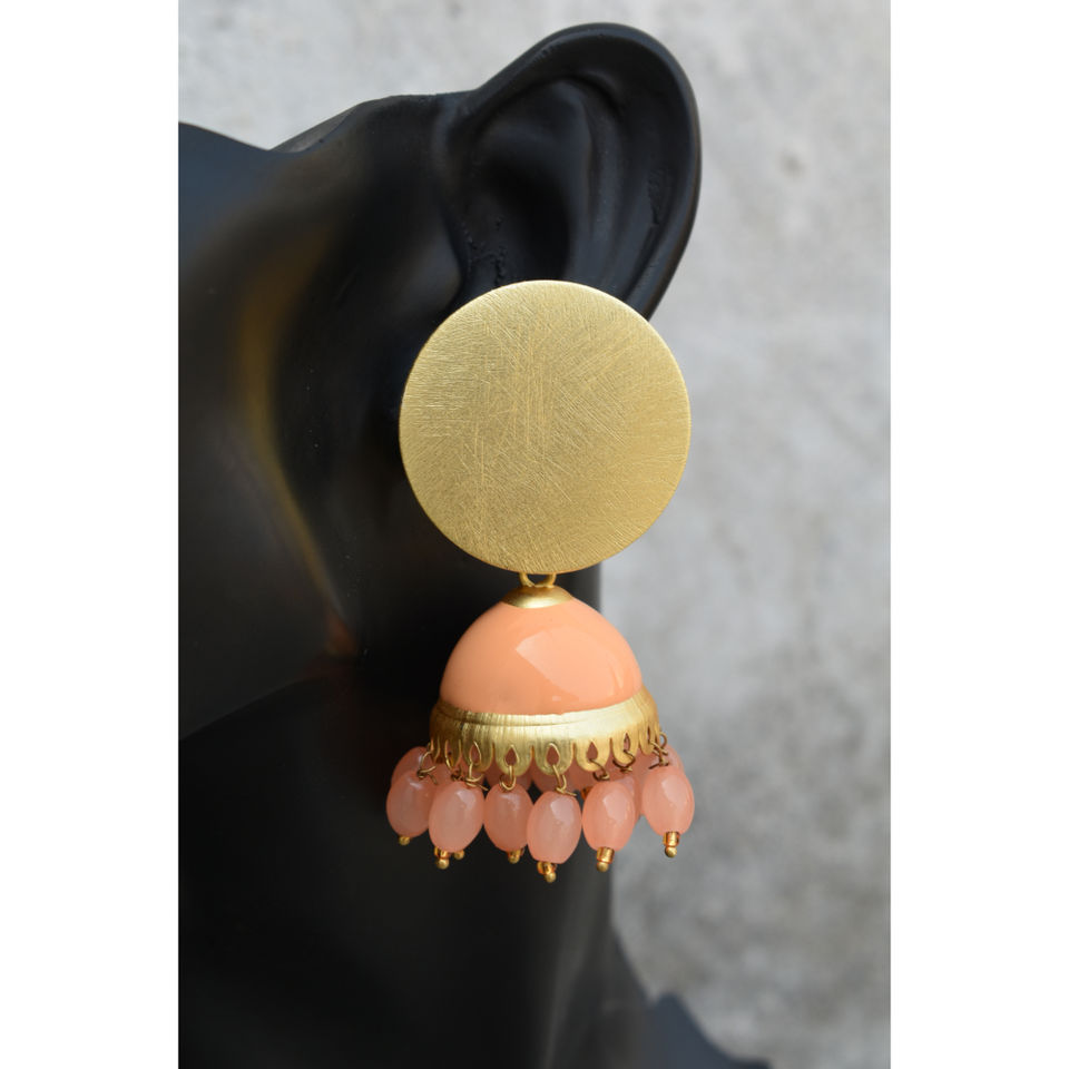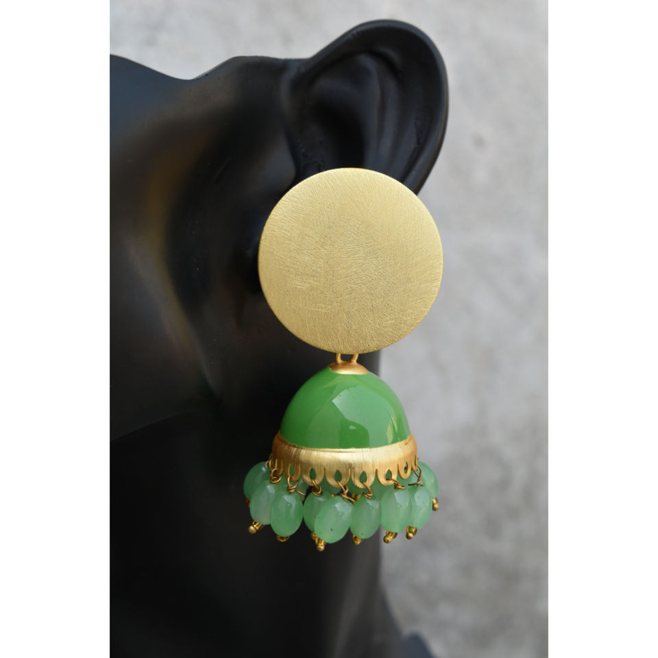 Mattefinishing ลูกปัดทองเหลืองยาวสีทอง,Jhumki ตุ้มหูแบบห่วงที่ทำจากหินชุด Partywear แบบดั้งเดิมสำหรับเด็กผู้หญิงและผู้หญิง