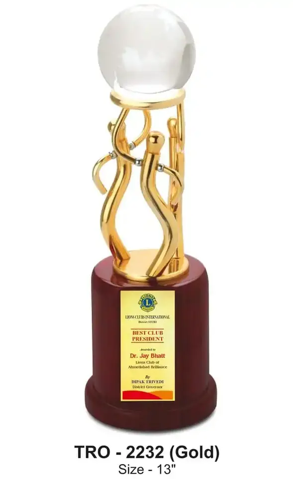 รางวัลเกียรติยศสำหรับผู้นำด้านความสำเร็จประจำปี พร้อมฐานไม้โครงสร้างสีทอง ประดับด้วยลูกแก้วคริสตัล