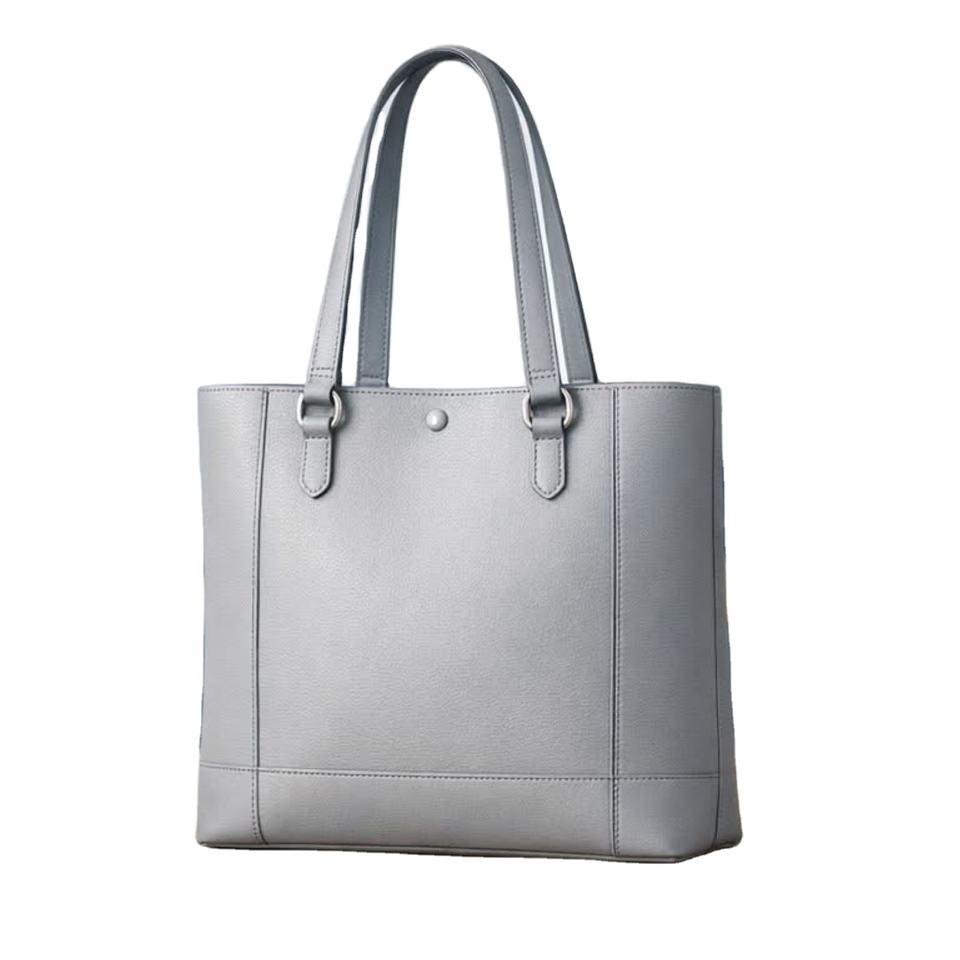 กระเป๋าโท้ทหนังสีเทา ดีไซน์คล้ายกับกระเป๋าโท้ทหนัง HC Collection หรือสินค้าจากแบรนด์ปากีสถาน เช่น กระเป๋าแบรนด์ bags