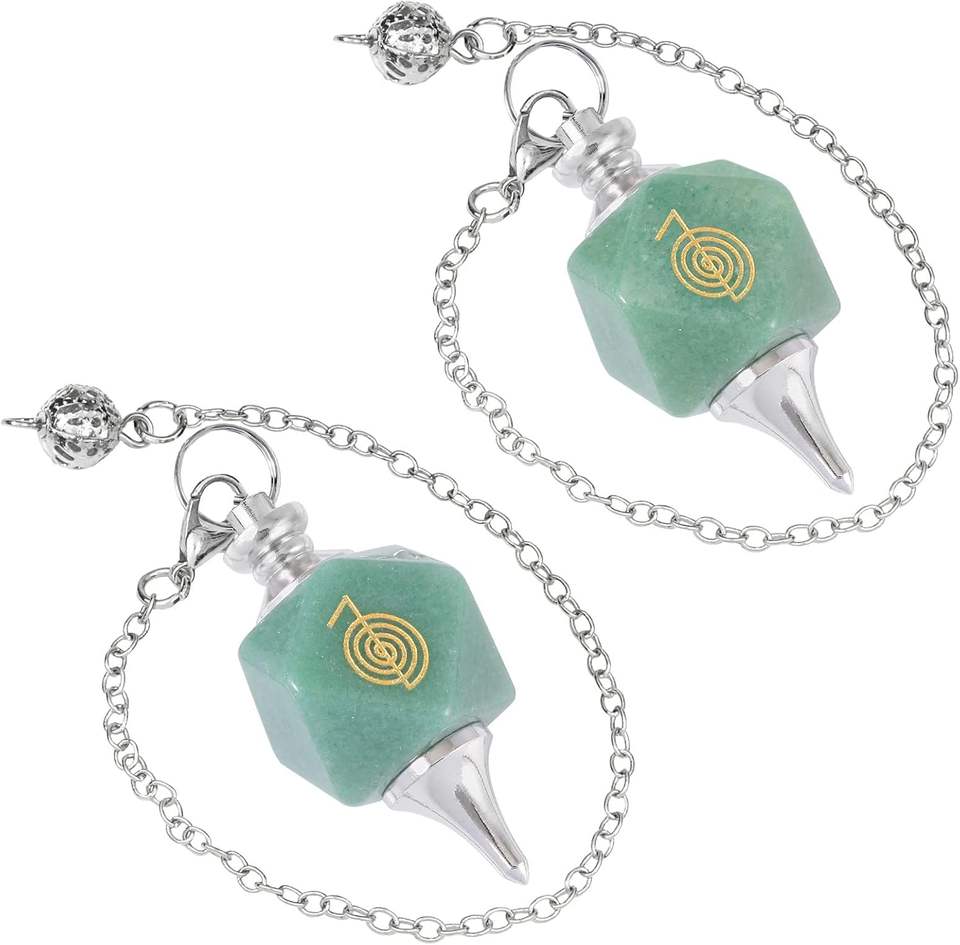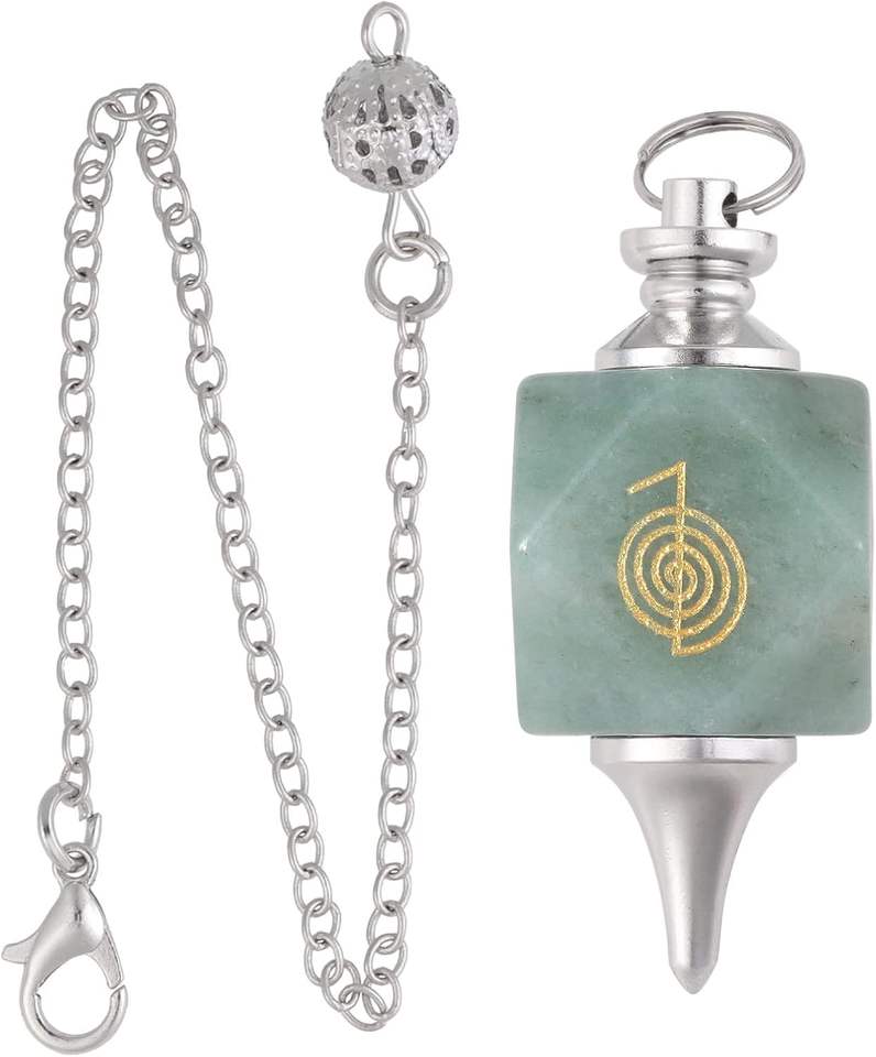 ลูกตุ้มสีเขียว Aventurine สลักสัญลักษณ์ ku Rei ลูกตุ้มเรกิคริสตัลรักษาพลังงานการทำนายเครื่องประดับ Dowsing Blessing