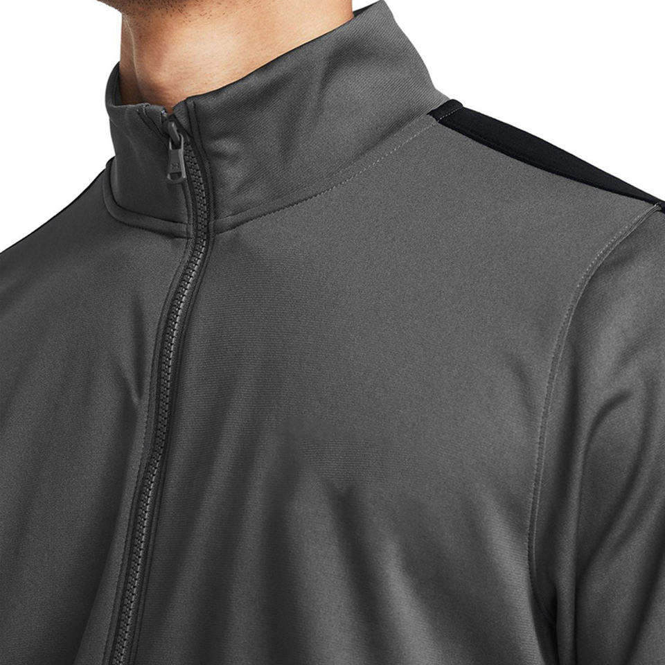 ชุดวอร์มสีเทาคอสูงสำหรับผู้ชายเสื้อแจ็กเก็ตและกางเกงวิ่งแบบแห้งเร็วระบายอากาศได้ดีชุดออกกำลังกาย