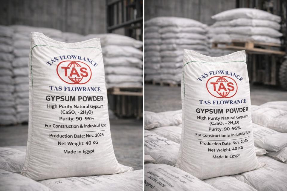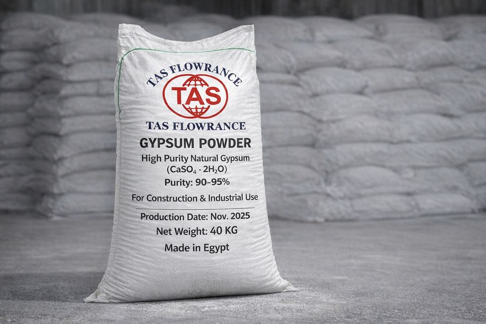 ผงยิปซัมอุตสาหกรรม เฮมิไฮเดรต CaSo4 95% ยี่ห้อ TAS ยี่ห้อ TAS GYPSUIM สำหรับงานก่อสร้างและหล่อขึ้นรูป