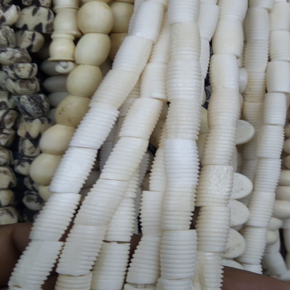ลูกปัดกระดูกแกะสลักด้วยมือจากแหล่งที่มาที่เป็นมิตรต่อสิ่งแวดล้อม รูปทรงไม่สม่ำเสมอ สีขาว สำหรับทำเครื่องประดับสไตล์โบโฮ งานถักมาคราเม่ บรรจุกล่อง