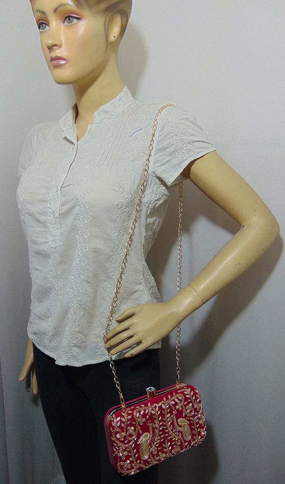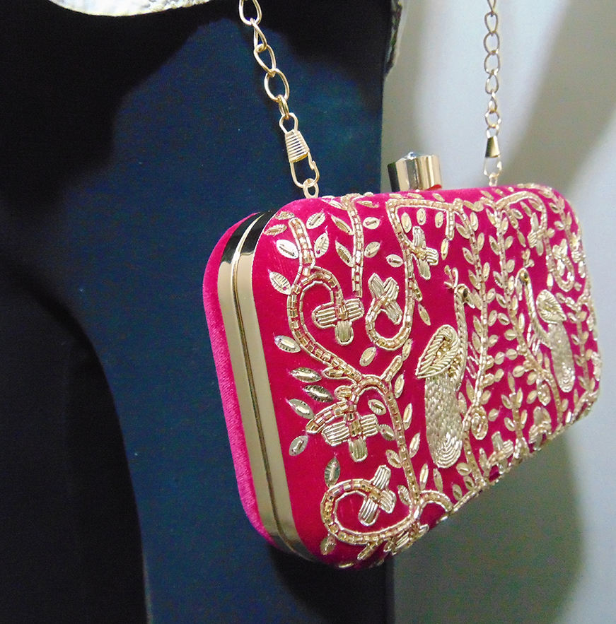 งานปักมือขายส่งอินเดีย กระเป๋าคลัทช์ทรงกล่อง