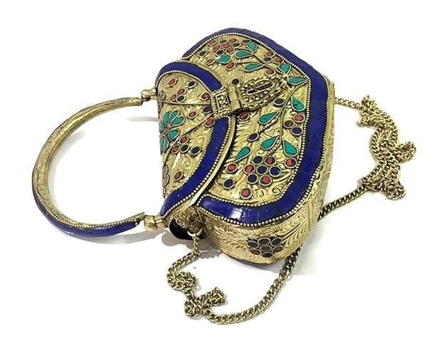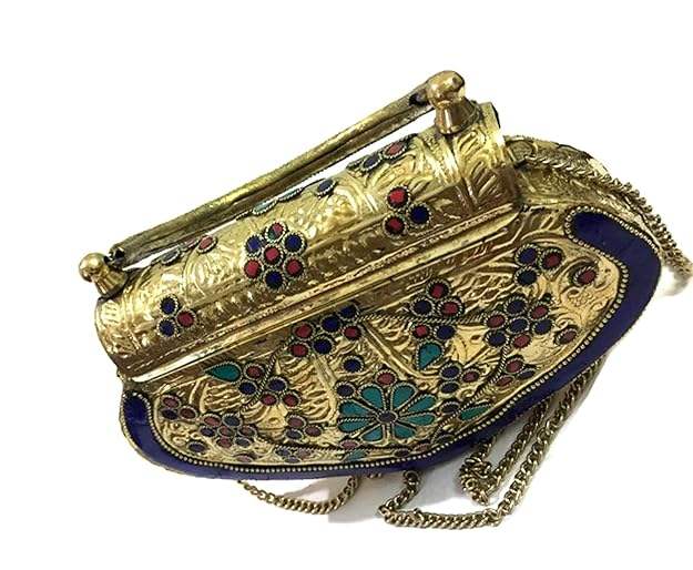 กระเป๋าคลัทช์ทองเหลืองทำมือสำหรับงานแต่งงานแบบดั้งเดิมและชุดงานเฉลิมฉลอง กระเป๋าคลัทช์ทองเหลืองสลักลายพรีเมียมสำหรับชุดพื้นเมือง