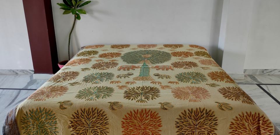 ผ้าปูที่นอนงานปักมือ ผ้าคลุมเตียงปักลายทำมือ