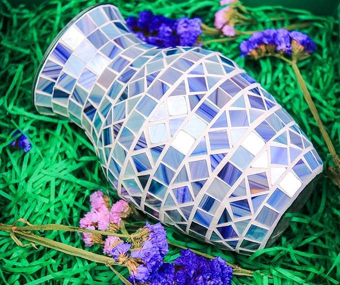 แจกันดอกไม้ทำด้วยมือโมเสกแก้วสำหรับตกแต่งบ้านแจกันดอกไม้เซรามิกโมเสคสีสันสดใสสำหรับตกแต่งห้องนั่งเล่น