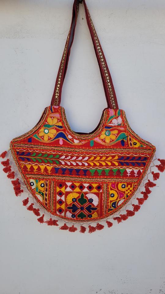 กระเป๋าสะพายไหล่ปักลายโบราณทำมือสไตล์ชนเผ่าโบฮีเมียนยิปซี