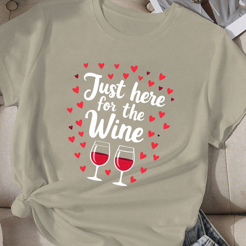 หัวใจอยู่ที่นี่เพื่อเสื้อยืดผู้หญิงใส่สบายสำหรับไวน์