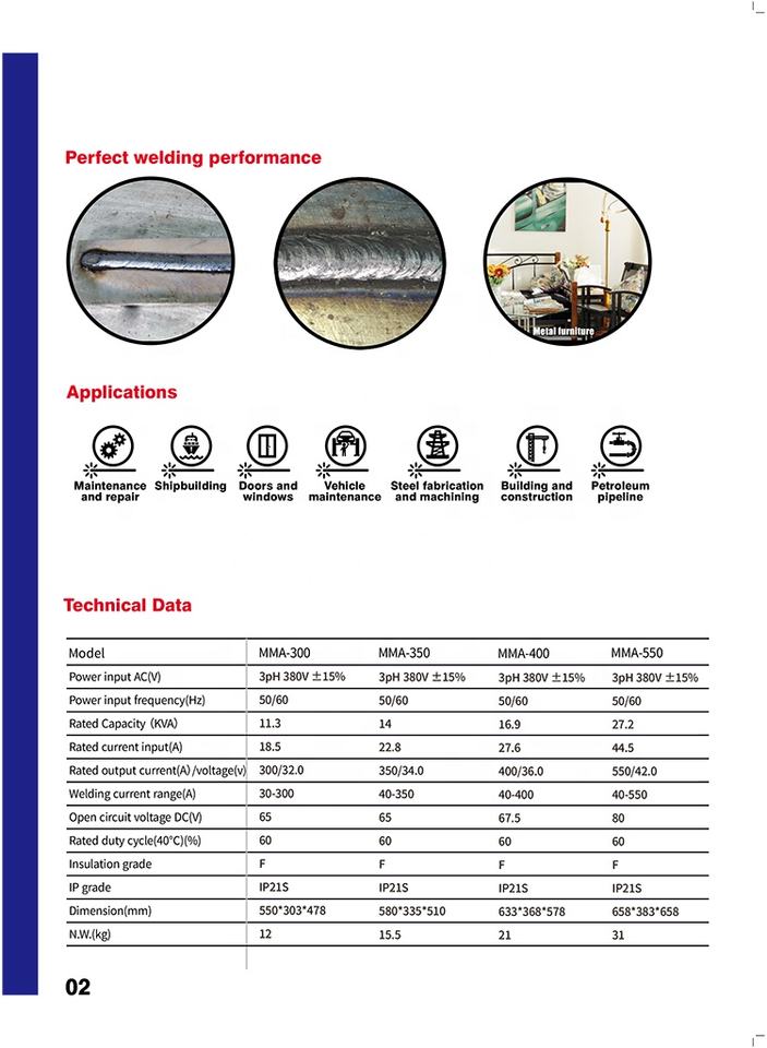 เครื่องเชื่อมอาร์คโลหะด้วยมือแบบพกพาเครื่องเชื่อมอินเวอร์เตอร์ MMA-550 380V 300A 3เฟสใช้งานในอุตสาหกรรมหนัก