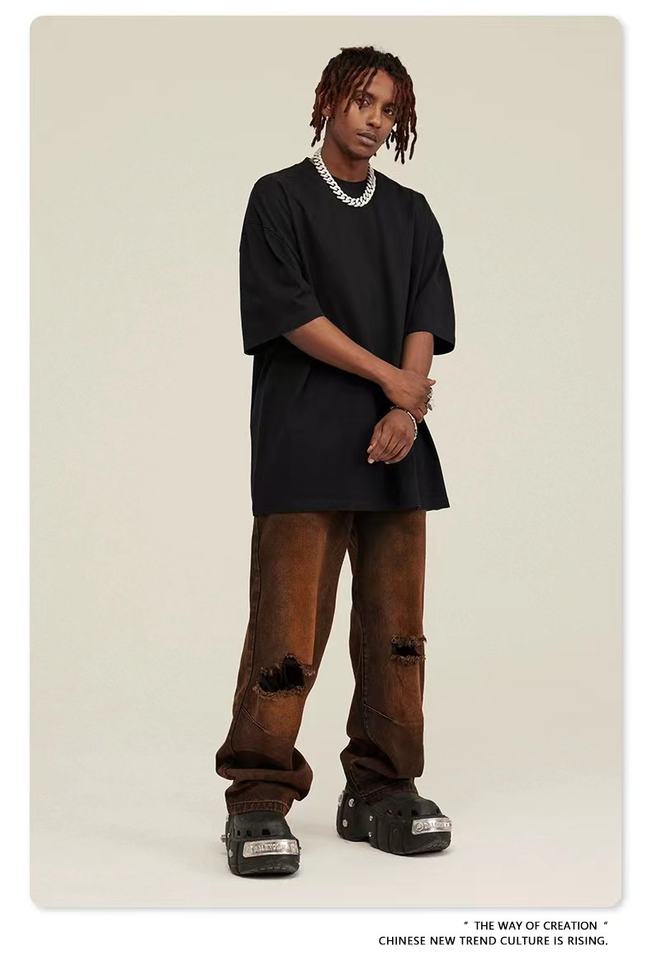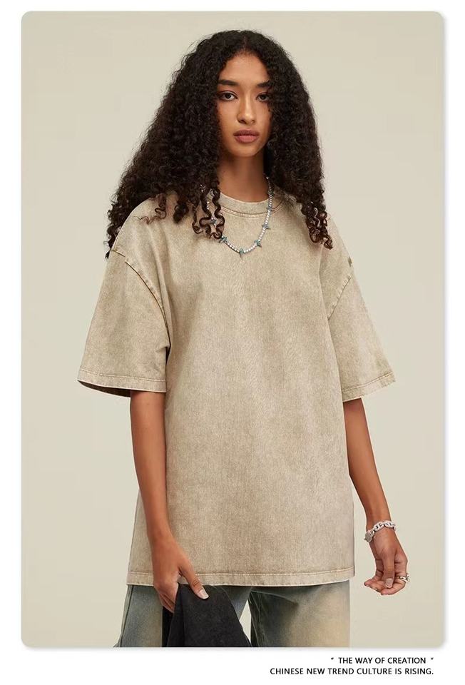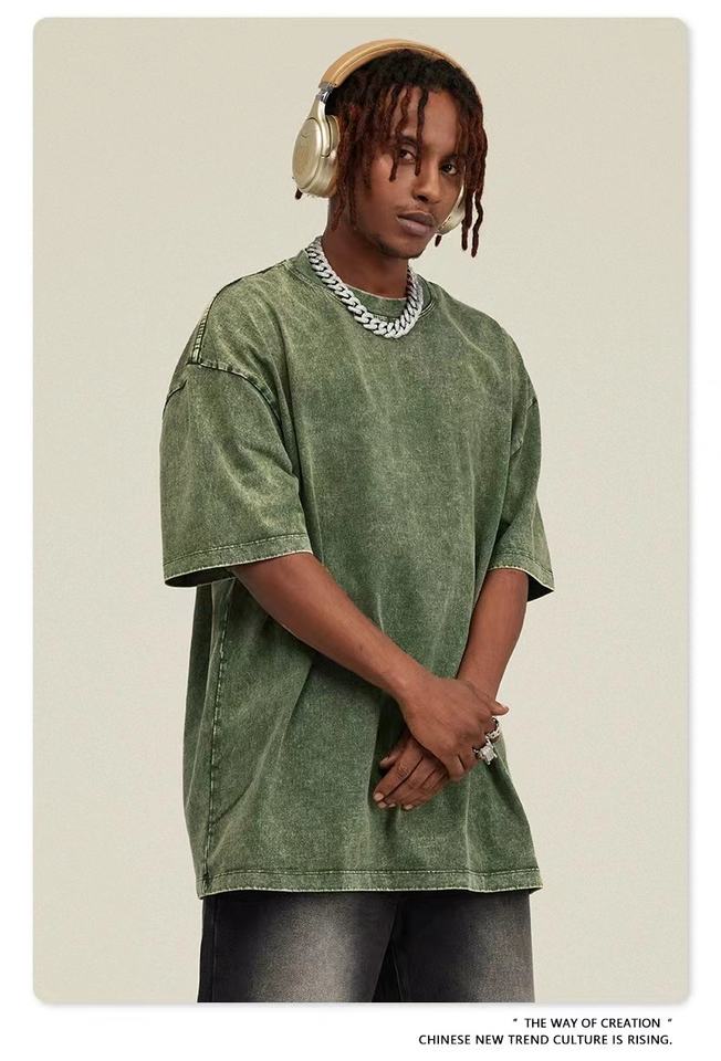 เสื้อยืดวินเทจฟอกสีกรด100% เฮฟวี่เวทโลโก้ตามสั่งเสื้อยืดฮิปฮอปสำหรับผู้ชายจัดส่งแบบ DDP