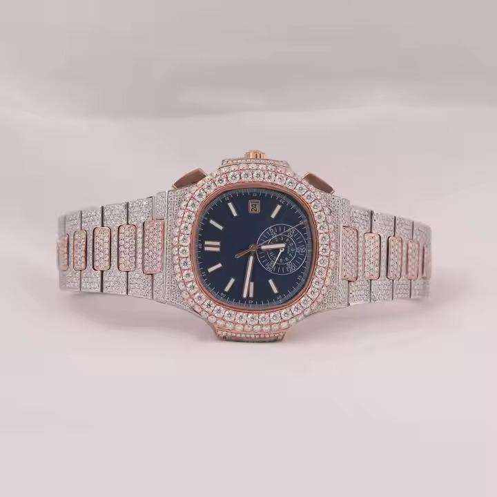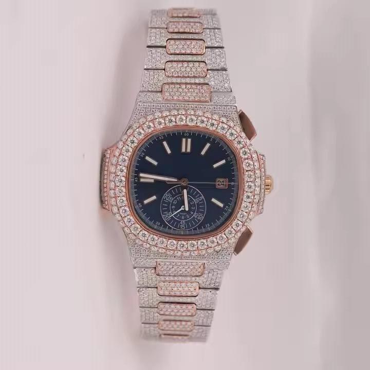 คุณภาพสูง VVS Moissanite นาฬิกาแฟชั่นสไตล์ฮิปฮอปทำจากสเตนเลสสตีลและเครื่องประดับสำหรับผู้ชาย