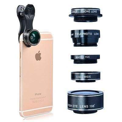 ความเข้ากันได้สูง เลนส์ทำจากอะลูมิเนียมเพื่อเพิ่มความทนทาน ชุดเลนส์ 5 ชิ้น + กล่องใส่สำหรับสมาร์ทโฟนทุกรุ่น