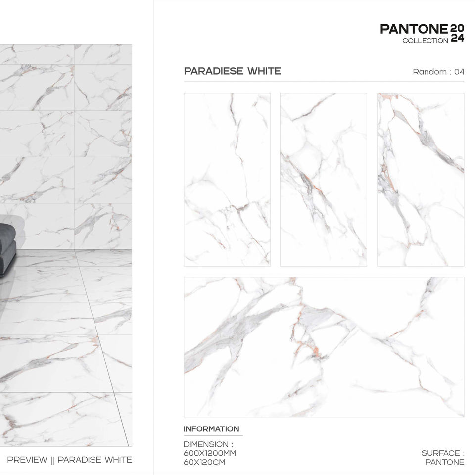 กระเบื้องพอร์ซเลนเคลือบสีแพนโทน ขนาด 60x120 ซม. 600x1200 มม. 24x48 นิ้ว สำหรับงานตกแต่งภายในระดับพรีเมียม มีความต้องการสูง