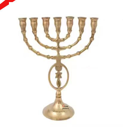 เชิงเทียนเมโนราห์ 9 กิ่ง ดีไซน์ใบไม้โลหะอะลูมิเนียมเคลือบทอง คุณภาพสูง สำหรับวัด