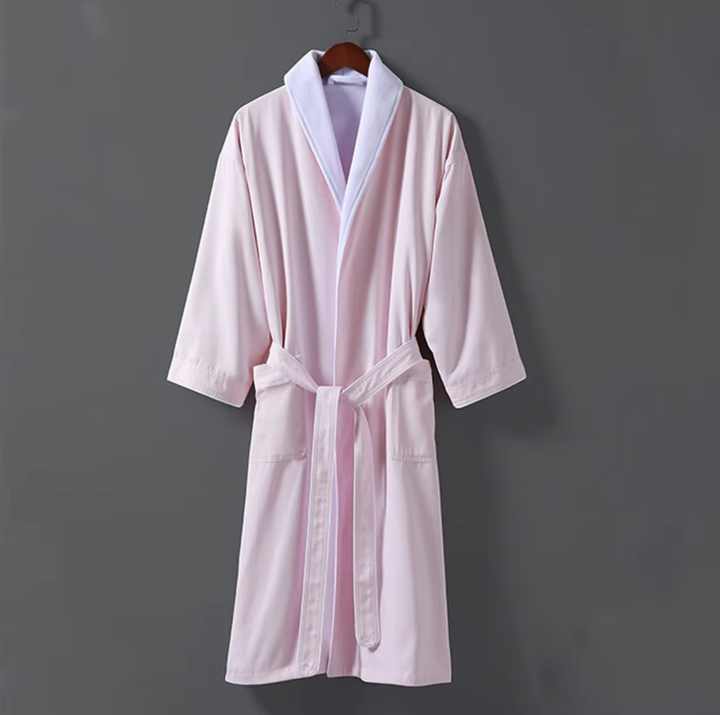 high quality 100%polyester r Bathrobe Hotel Double Layer Custom Bathrobe Plush Lined Microfiber Spa Bathrobe with pocket