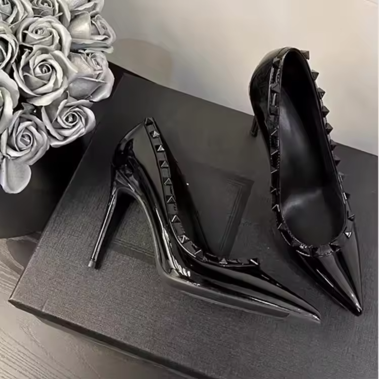 รองเท้าส้นสูงดีไซน์เนอร์คลาสสิกสีดำพื้นแดงสำหรับผู้หญิง รองเท้าเจ้าสาวสุดหรู รองเท้าส้นสูงสำหรับสุภาพสตรี รองเท้าปั๊ม