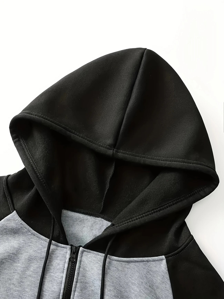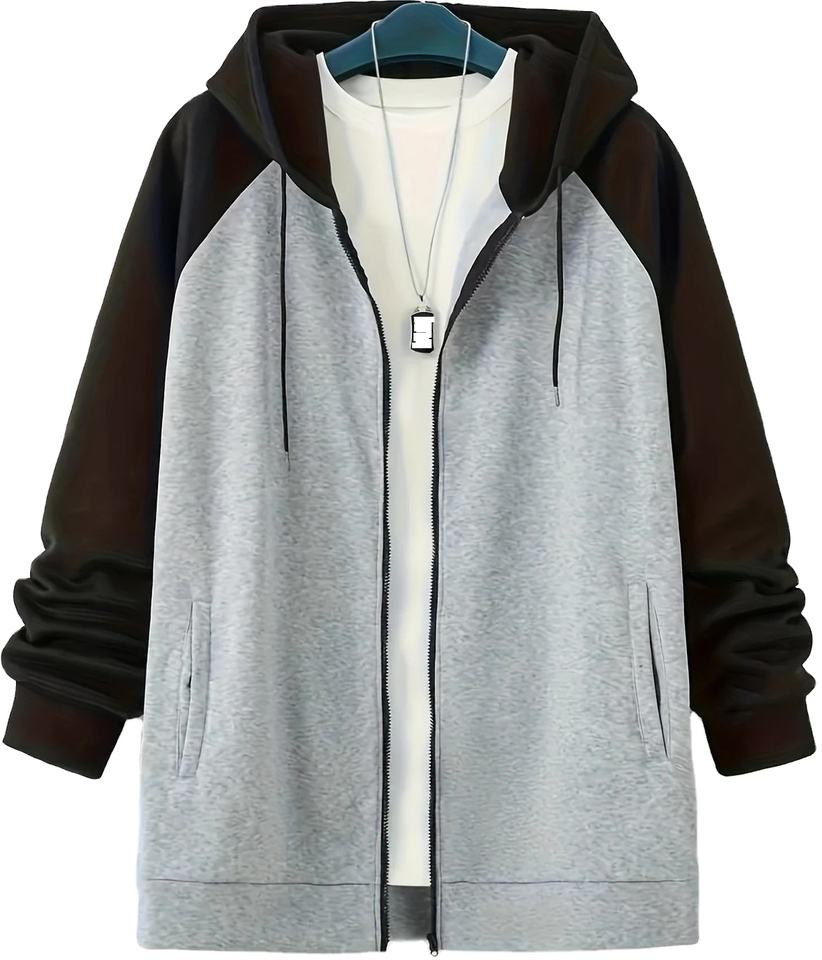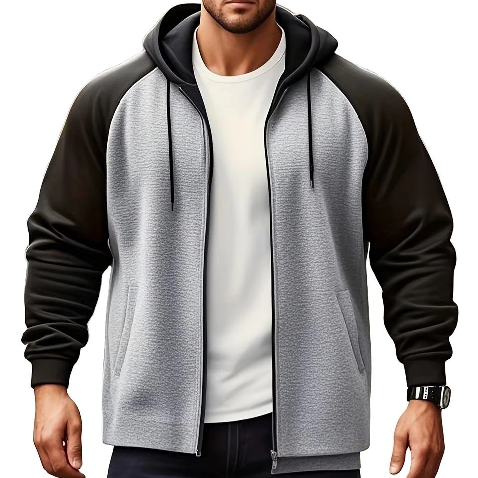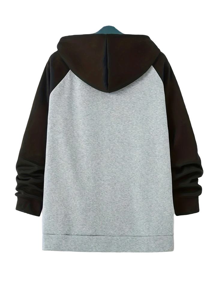 เสื้อสเวตเตอร์มีฮู้ดแนวสปอร์ตสำหรับผู้ชายดีไซน์บล็อกสีปกติมีกระเป๋าสีเทาและสีดำสวมใส่สบายทุกวันบังคลาเทศ