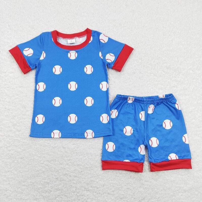 ชุดโปโลสีฟ้าสำหรับเด็กผู้ชายชุดเสื้อผ้าสำหรับเด็กเล็กชุดฤดูร้อนแบบบูติกมีกระเป๋า