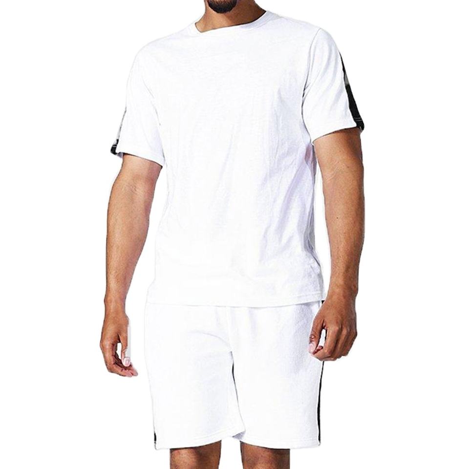 ชุดกีฬาฤดูร้อนผู้ชายสองชิ้น ผ้าฝ้าย 100% เสื้อยืดและกางเกงขาสั้นลำลอง ระบายอากาศได้ดี ลายเรียบ สำหรับผู้ชาย