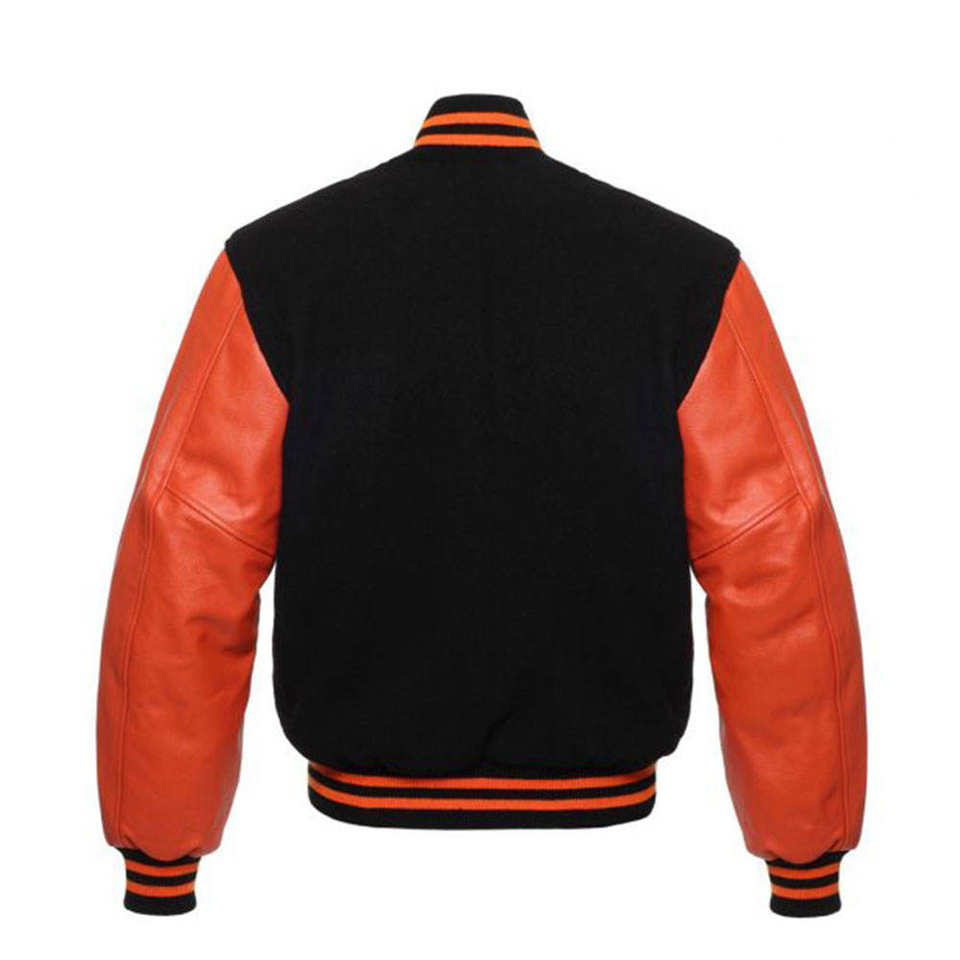 เสื้อแจ็คเก็ตวาร์ซิตี้คุณภาพสูงสำหรับผู้ชาย ผ้าฝ้ายฟลีซ แขนยาว หนังเรียบ แบบ Letterman มีกระเป๋าข้างสองด้าน