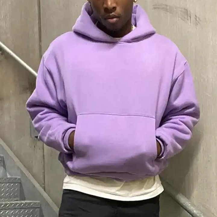 เสื้อฮู้ดดี้ทรงบ็อกซี่คุณภาพสูง 500 กรัม สตรีทแวร์ ผ้าเฟรนช์เทอร์รี่เนื้อหนา 100% ผ้าฝ้าย เสื้อฮู้ดดี้ทรงโอเวอร์ไซส์แบบครอปสำหรับผู้ชาย