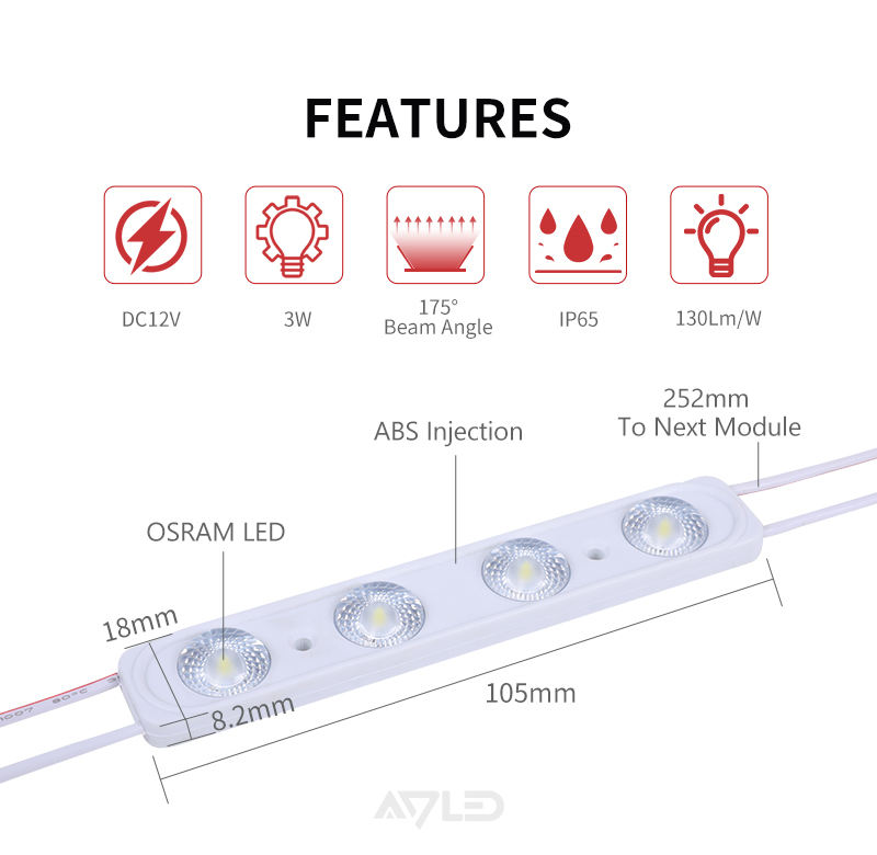 โมดูล LED คุณภาพสูง 3W 375LM โมดูลป้ายโฆษณา LED สำหรับใช้งานกลางแจ้ง กันน้ำระดับ IP67 สำหรับป้ายตัวอักษร