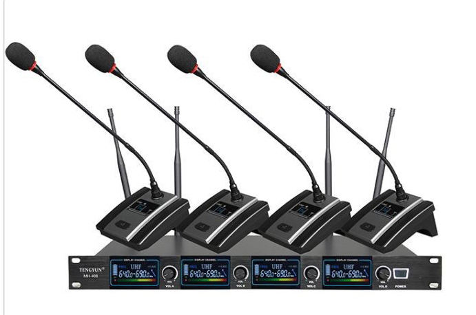 การตัดเสียงรบกวนคุณภาพสูง uhf ไร้สาย 360 ขาแขนยืดหยุ่นคอห่านโต๊ะไมโครโฟนสําหรับประชุมบรรยายโบสถ์