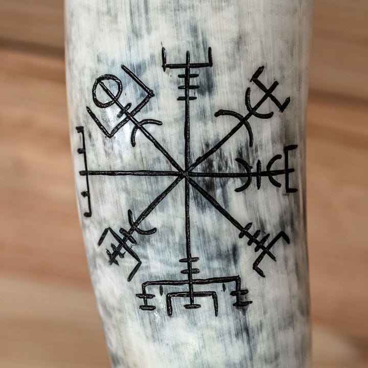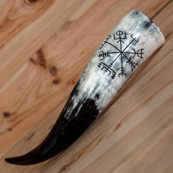เขาไวกิ้งแกะสลักลายเรือสไตล์วินเทจสำหรับงานเลี้ยงคริสต์มาส งานเลี้ยงมีดและอัล